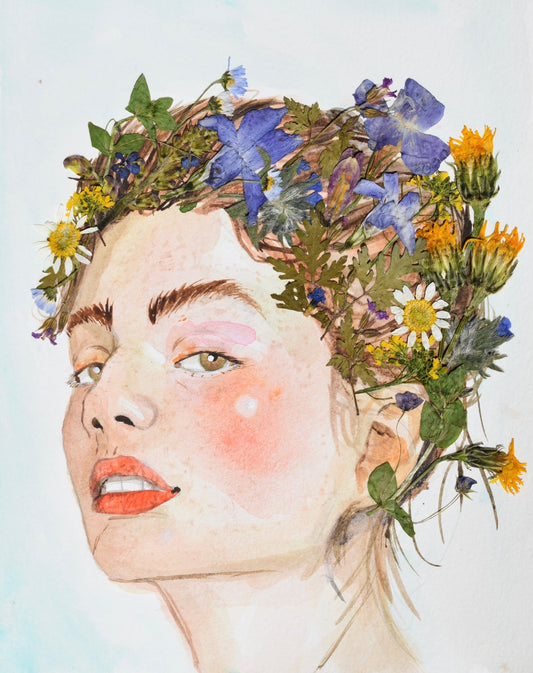 Print Retrato con Flores Secas Acuarela