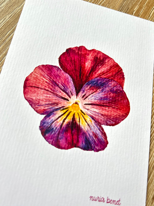 Print Flores Pensamiento Rosa Oscuro Acuarela