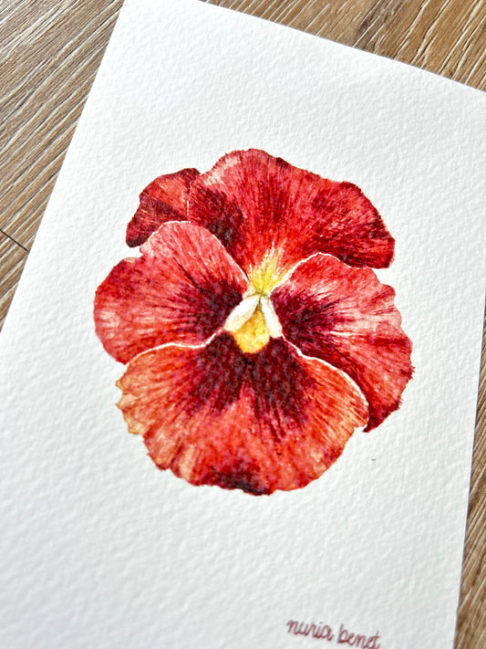 Print Flores Pensamiento Rojo y Amarillo Acuarela