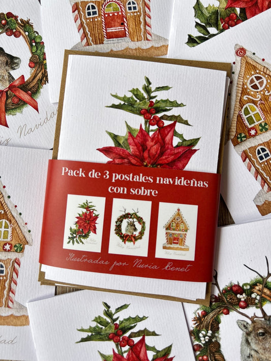 Pack de 3 Postales Navidad Acuarela